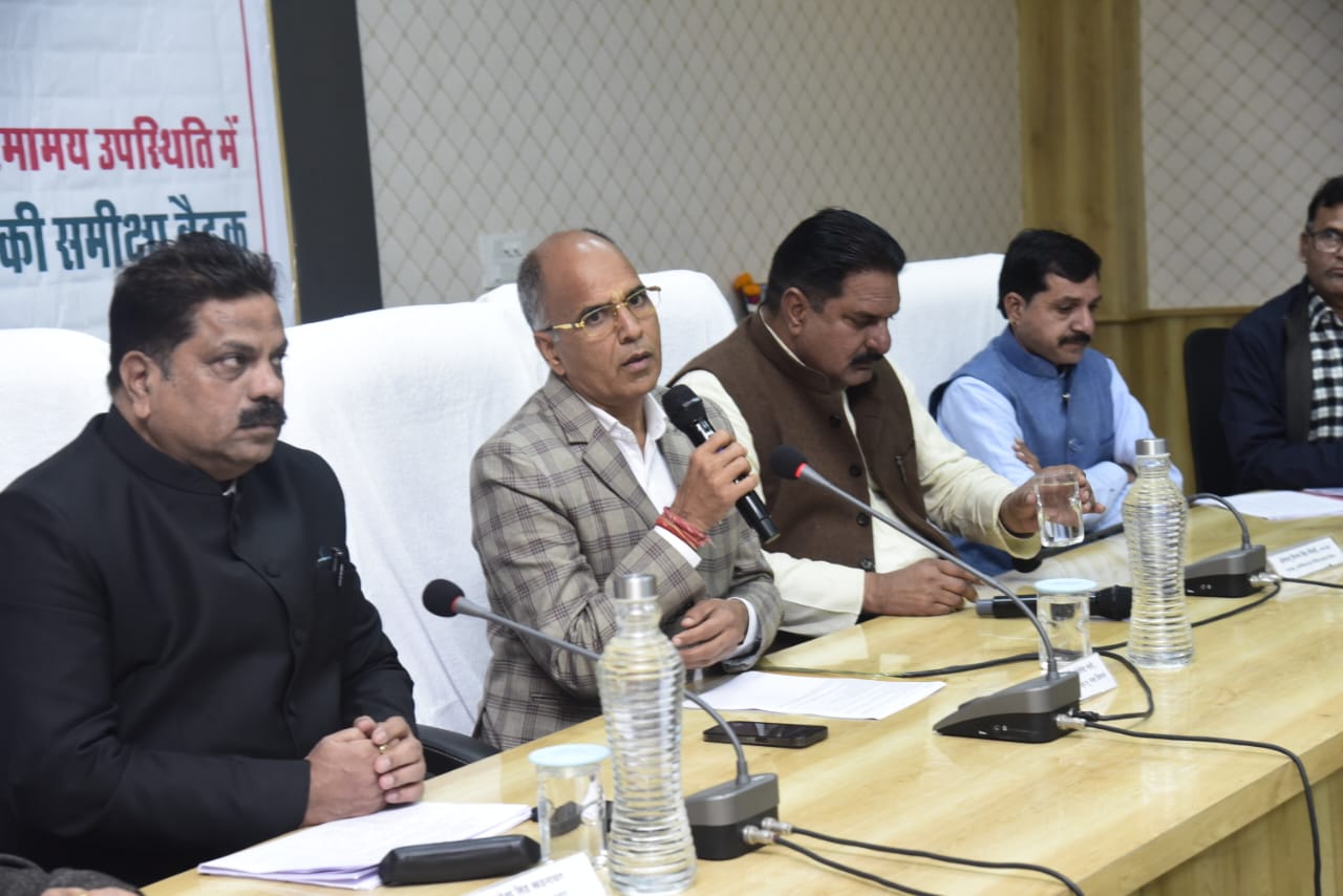 प्रभारी मंत्री श्री चौधरी ने जिला स्तरीय अधिकारियों के साथ समीक्षा बैठक की। बैठक को संबोधित करते हुए प्रभारी मंत्री ने कहा कि सभी अधिकारी जनकल्याण की भावना के साथ जिले के विकास के लिए कार्य करें। उन्होंने बजट घोषणाओं की प्रगति, जल जीवन मिशन,जिले में चल रहे विभिन्न विभागों से जुड़े निर्माण कार्य, आधारभूत संरचना के विकास से संबंधित कार्य, जिले में पेयजल व्यवस्था एवं विभिन्न स्तर पर लंबित कार्यों की क्रियान्वित के संबंध में चर्चा करते हुए संबंधित अधिकारियों को निर्देशित किया।